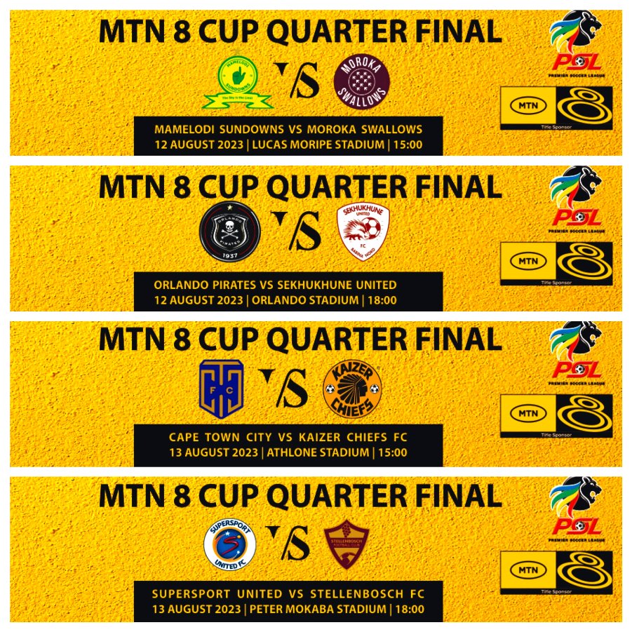 The Premier Soccer League (PSL) has confirmed the MTN8 quarter-final fixtures, dates, and kick-off times.