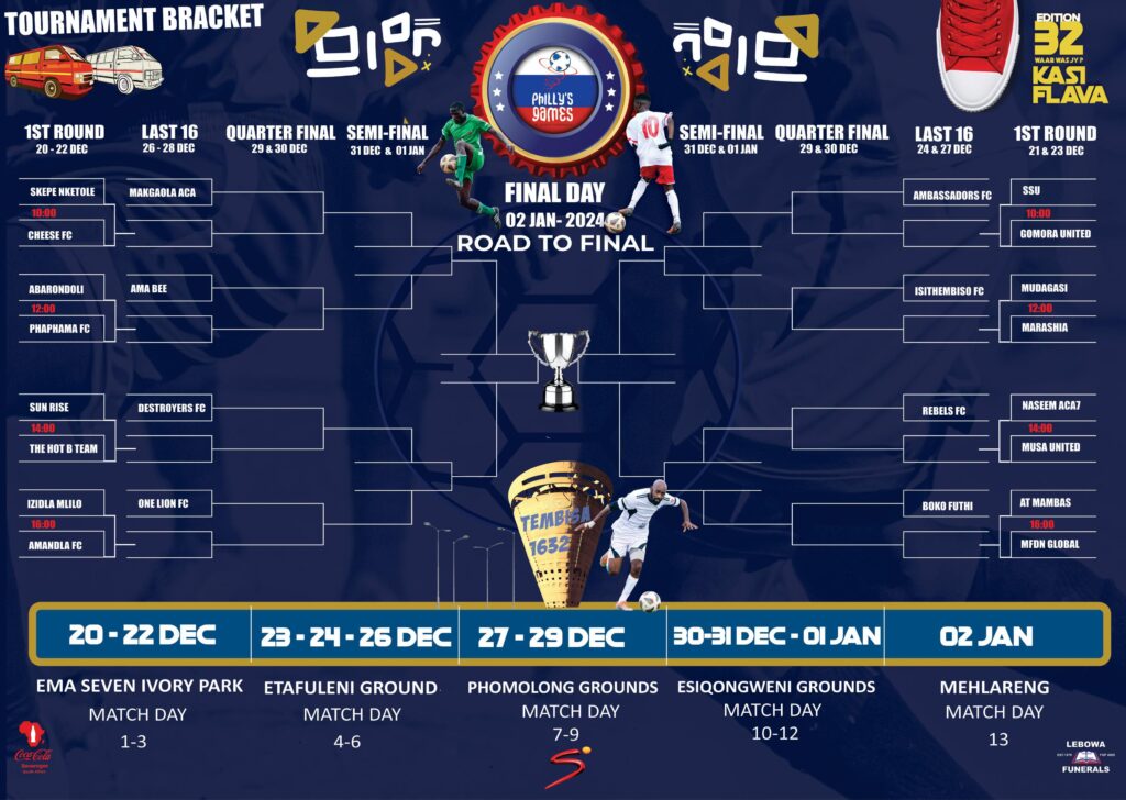 The successful partnership between DStv and Philly’s Games has made it possible for us to provide yet another opportunity for kasi teams to compete for the  R220 000 prize Money and showcase their talent.  We are excited to get 32nd edition of the tournament underway.”