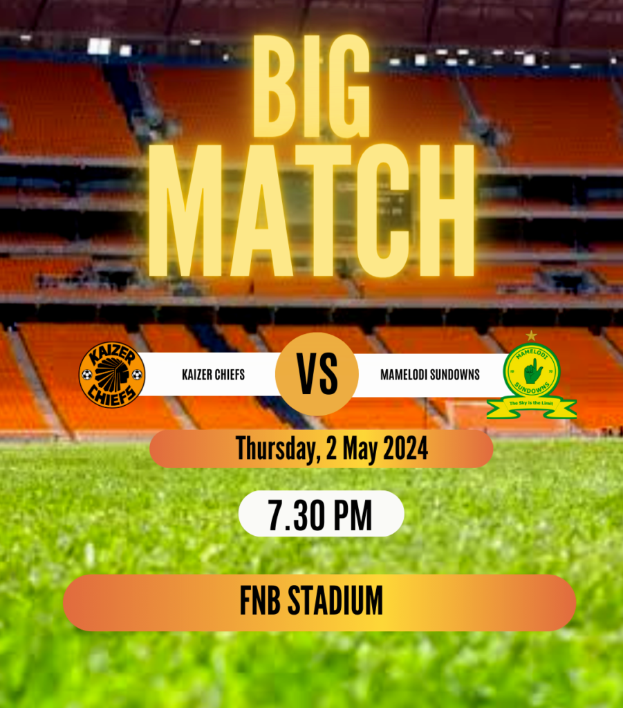 DISKIFANS and DStv are giving away 5 double tickets (10 in total) to lucky readers to watch the DStv Premiership match between Kaizer Chiefs and Mamelodi Sundowns live at the FNB Stadium in Johannesburg at 19h30 on Thursday, 2 May 2024.