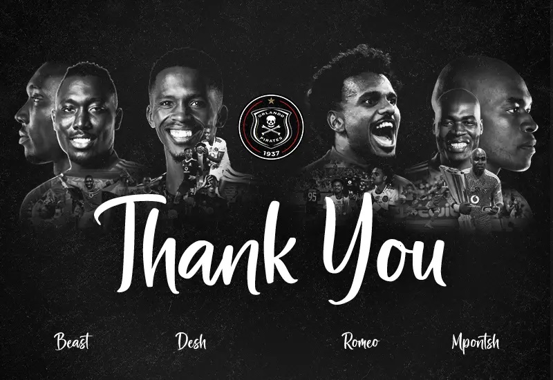 Orlando Pirates have parted ways with Thabang Monare, Kermit Erasmus, Siyabonga Mpontshane and Richard Ofori.