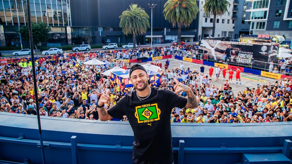 Football star Neymar Jr. made a special appearance when PUMA hosted local youth players and fans for a day of Brazilian small-sided football at the Hollywood Palladium. The free event featured 4×4 tournament-style street soccer played on two Brazil-inspired football pitches.