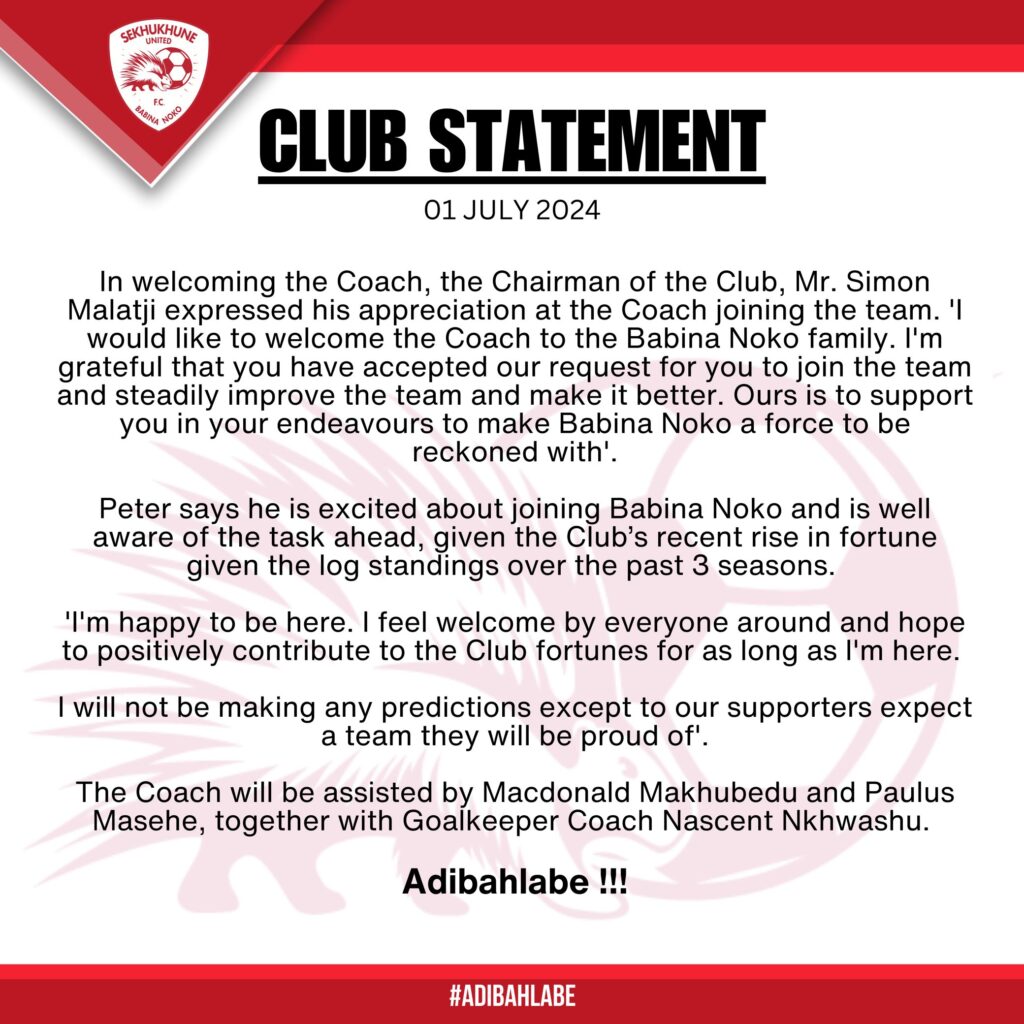 READ: Sekhukhune United announce Peter Hyballa as new head coach