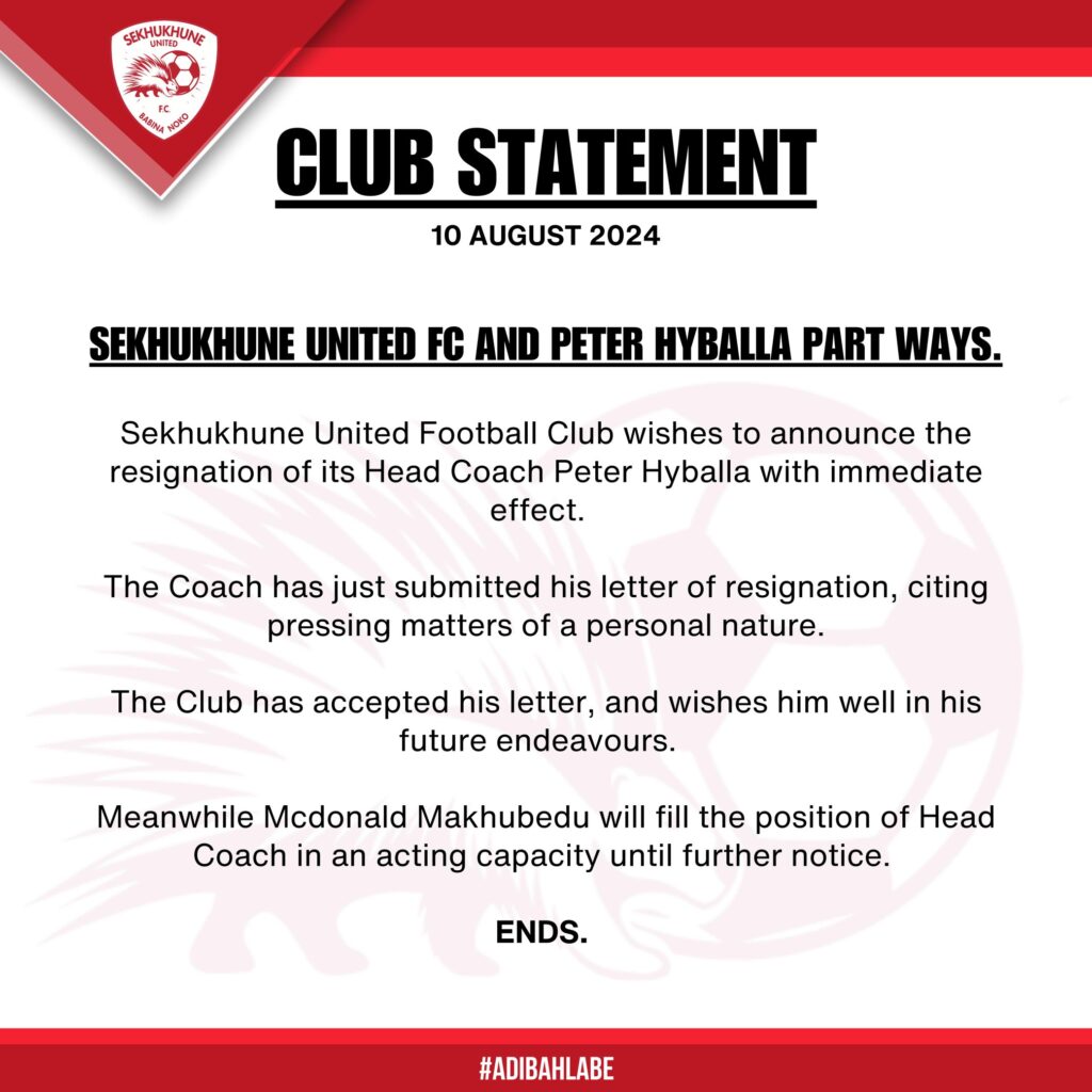 Sekhukhune United have parted ways with German coach Peter Hyballa without him even coaching one game this season.