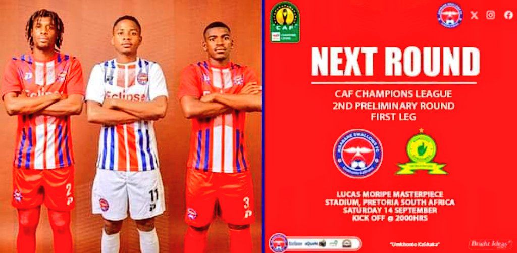 Eswatini side Mbabane Swallows will host Mamelodi Sundowns in the first leg of the second preliminary round of the CAF Champions League at Lucas Moripe Stadium in Pretoria, South Africa on the 14th of September 2024.