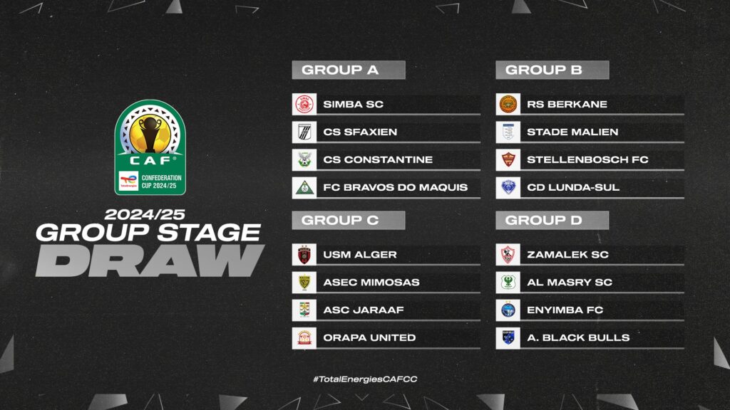 Full draw of the CAF Confederation Cup 2024/25 group stage: