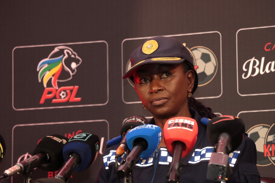 Angie Mokasi, Director of Operations at Johannesburg Metropolitan Police Department (JMPD), updating the media on logistical arrangements for the match between Kaizer Chiefs and Mamelodi Sundowns at FNB Stadium on Saturday.