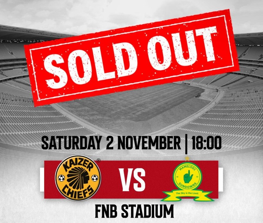 SOLD OUT! Kaizer Chiefs vs Mamelodi Sundowns Carling Knockout tickets FINITO!