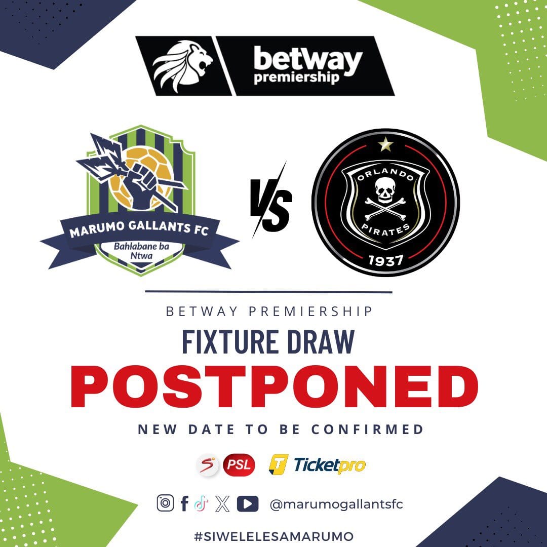 Marumo Gallants’ statement, posted on social media, said: “Our Betway Premiership fixture against Orlando Pirates, originally scheduled for 3 December 2024, has been postponed. A new date and time will be communicated soon.”