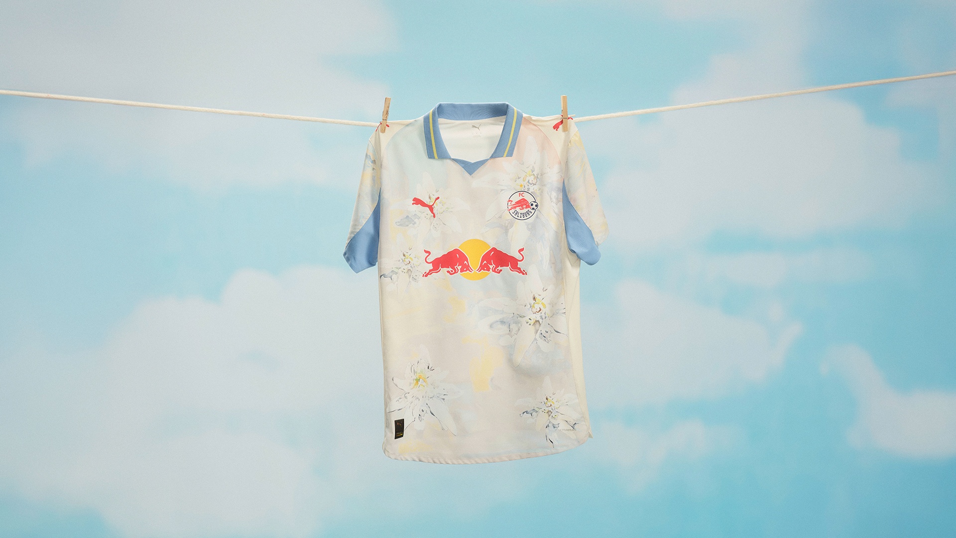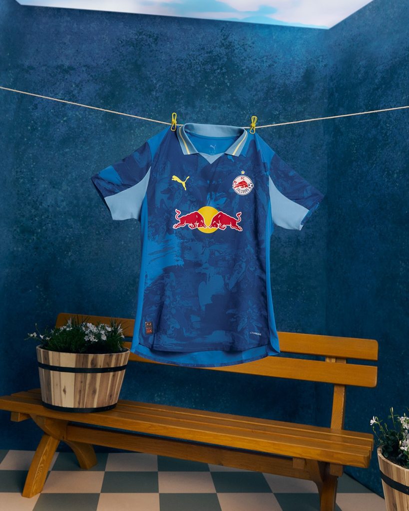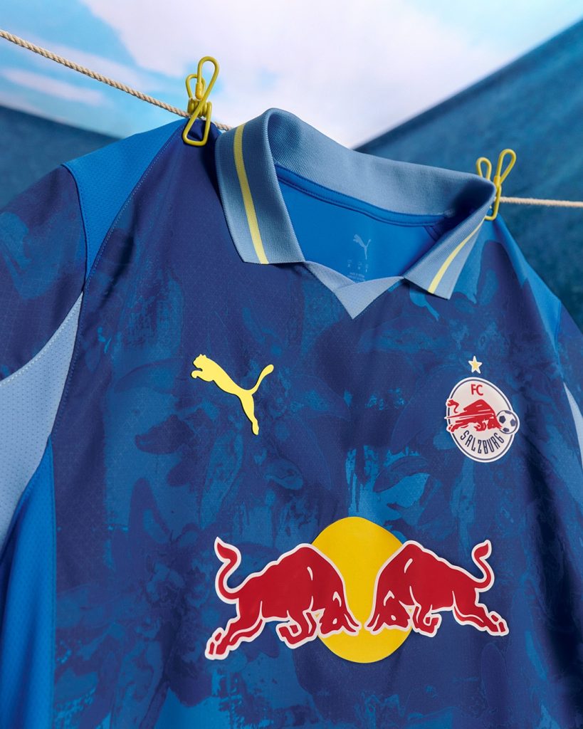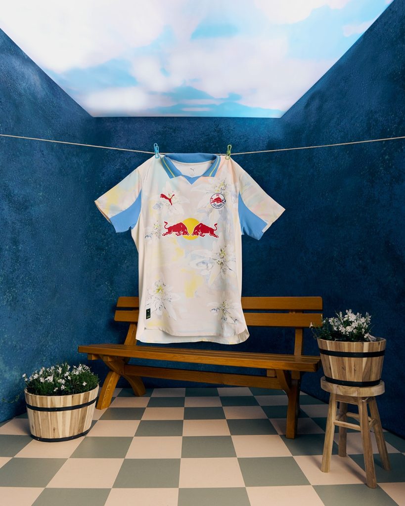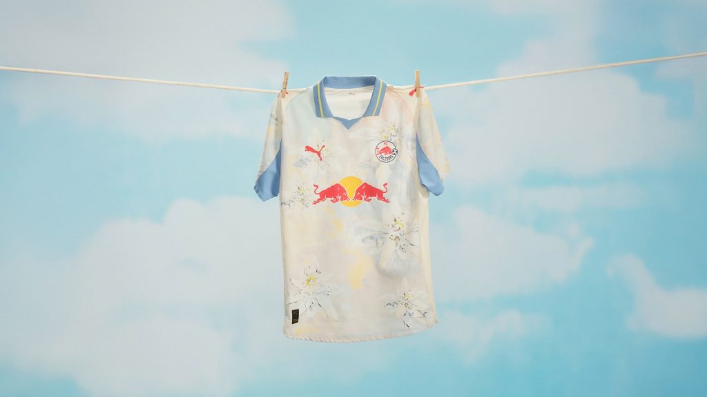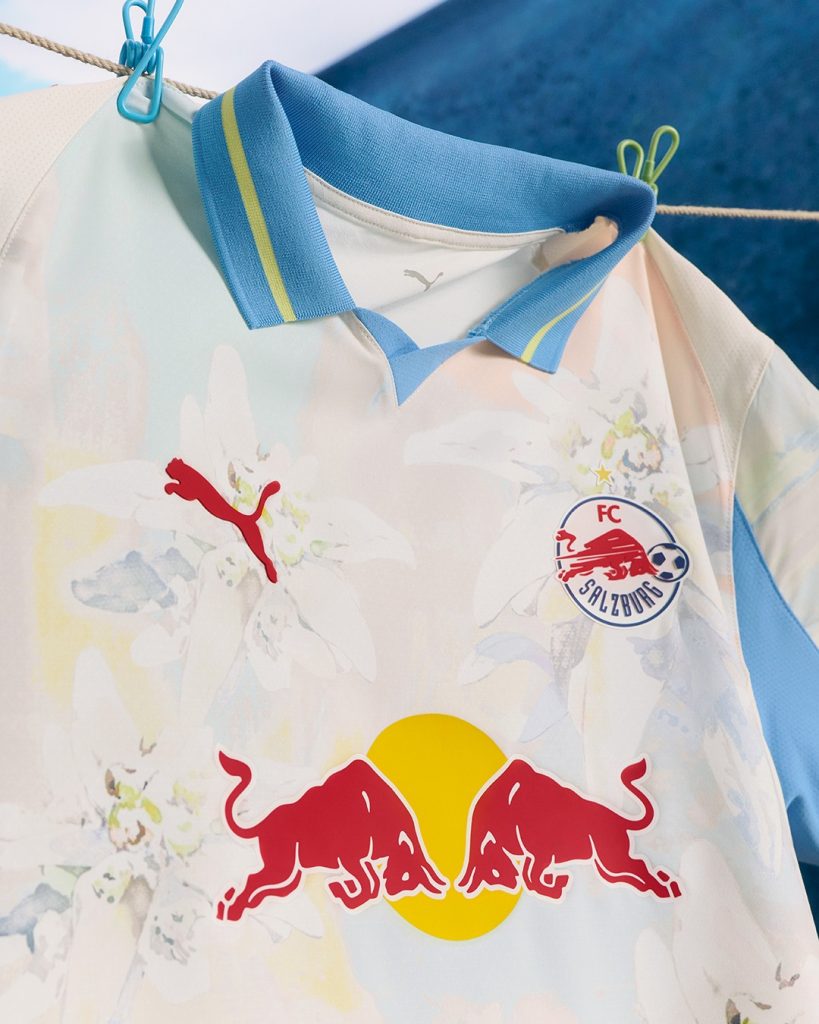 Alpine beauty with a New York edge. From the PUMA x KIDSUPER collection, the FC Salzburg kit reimagines the iconic Edelweiss flower with sweeping strokes of ivory, lemon, and baby blue for the Home kit and an ultra-blue base with scotch blue and lemon details for the goalkeeper kit.