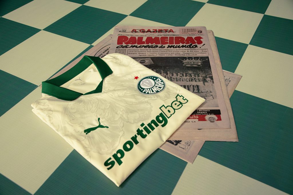 In 1914, a group of Italian immigrants founded a football team in São Paulo. Over a century later, Palmeiras continue to embody the vibrant fusion of Italian and Brazilian culture. With this kit, KidSuper honors the Club’s legacy as the inaugural Club World Champions in 1951. The baroque-inspired Home kit features a leaf motif against a golden base, a nod to the Club’s Copa Rio triumph and timeless status. The goalkeeper jersey features the same design but in glowing red, dark crimson and gold.