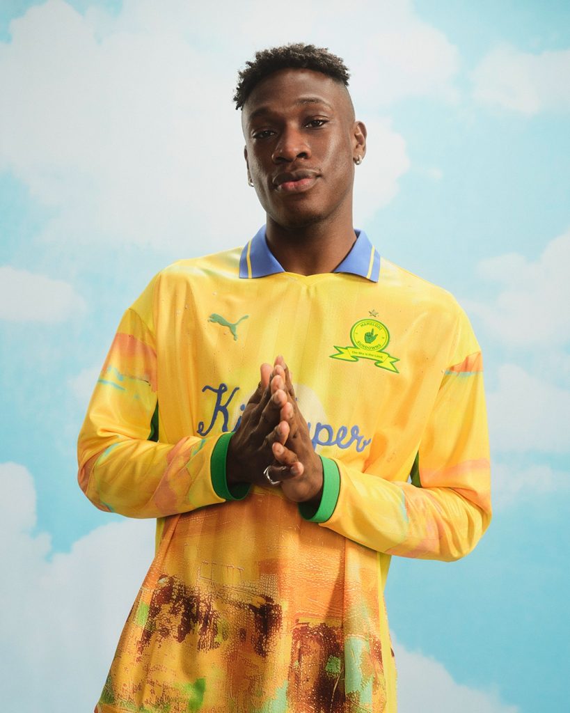 In the PUMA x KIDSUPER collaboration, the Mamelodi Sundown’s Home kit does the same – blending warm, sunlit tones with cooler shades to reflect the club’s signature style. The result captures the rhythm, energy, and joy of Sundown’s football, known locally as “shoeshine and piano.” The Home jersey features a yellow base with mountain blue, green and white details with the goalkeeper jersey implementing a purple base with yellow and mountain blue details.