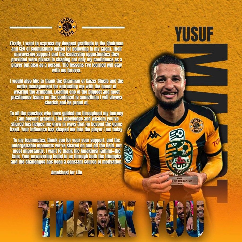 Yusuf Maart pens farewell message to Kaizer Chiefs