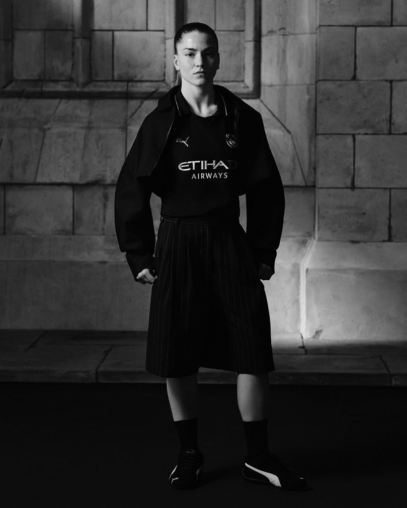 Marco Mueller, PUMA’s Senior Director of Product Line Management Performance Apparel, said: “Reimagining Manchester City’s oldest-known kit was a special honour for us, not many people would know that black was the original colour of the Club, and we love to celebrate the culture and identity of our Clubs and what sets them apart. Being able to bring an all-black kit was exciting and gave us the opportunity to do something new with the Away jersey. Another first is that this is the first time PUMA has ever shot a campaign fully in black and white which really ties in beautifully to the design of the kit.”