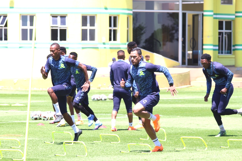 Mamelodi Sundowns players warming-up and training