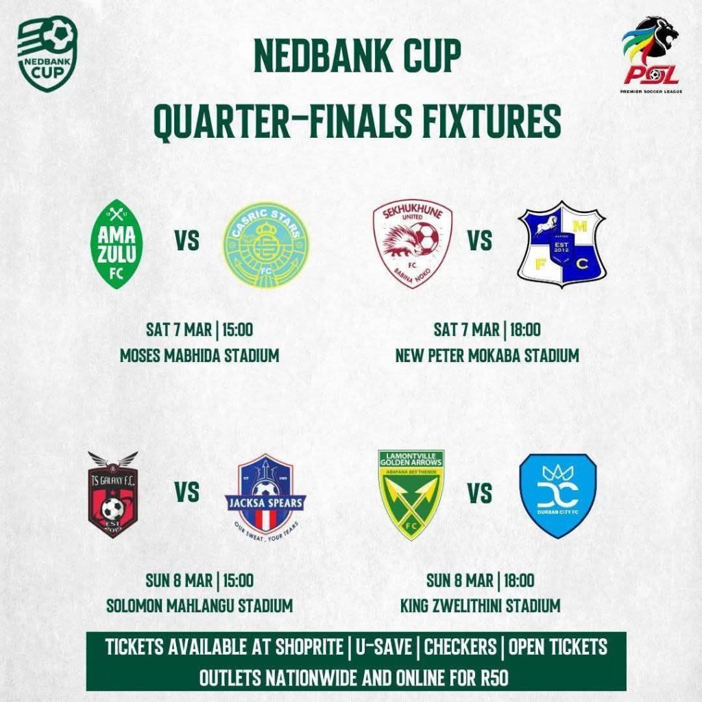 The winners of these quarter-final ties will not only move closer to lifting the Nedbank Cup trophy but also secure the chance to represent South Africa in the CAF Confederation Cup next season. With underdogs already proving their strength and big names falling, the last-eight lineup promises unpredictable outcomes and plenty of excitement for fans.
